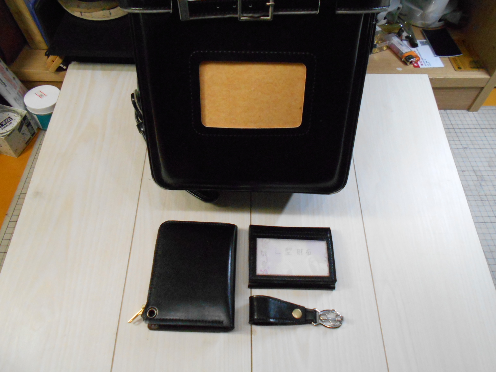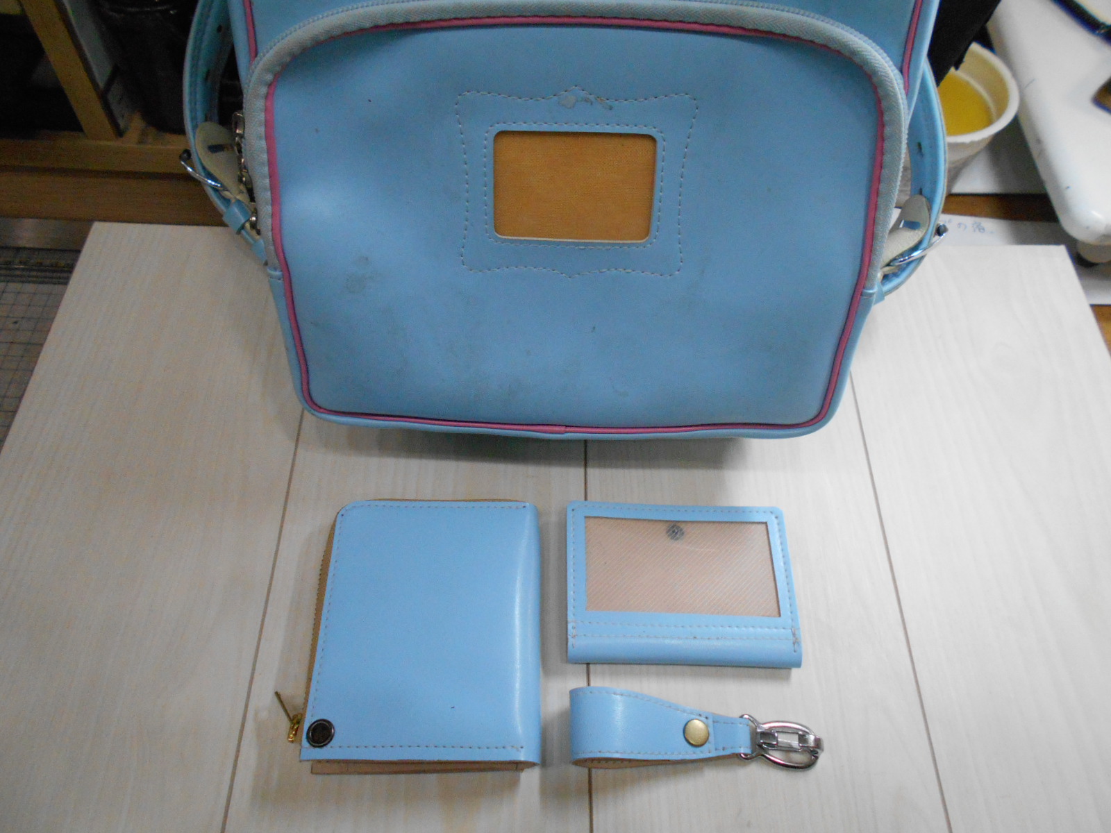 古いランドセルから思い出を残す為、L型財布に作り替え3点セット